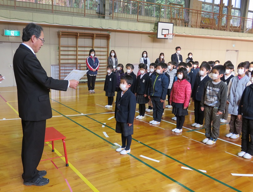 今朝の児童朝礼で、「牛乳大好き!絵画コンクール」の入賞者(1年生)へ賞状の伝達をしました。