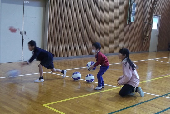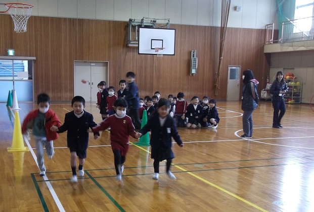 また、保護者対象の説明会の時間には、5年生が自分たちで考えた企画で、1年生と一緒に体育館でゲームをしたり、教室でお話や、ゲーをしたりしてくれました。