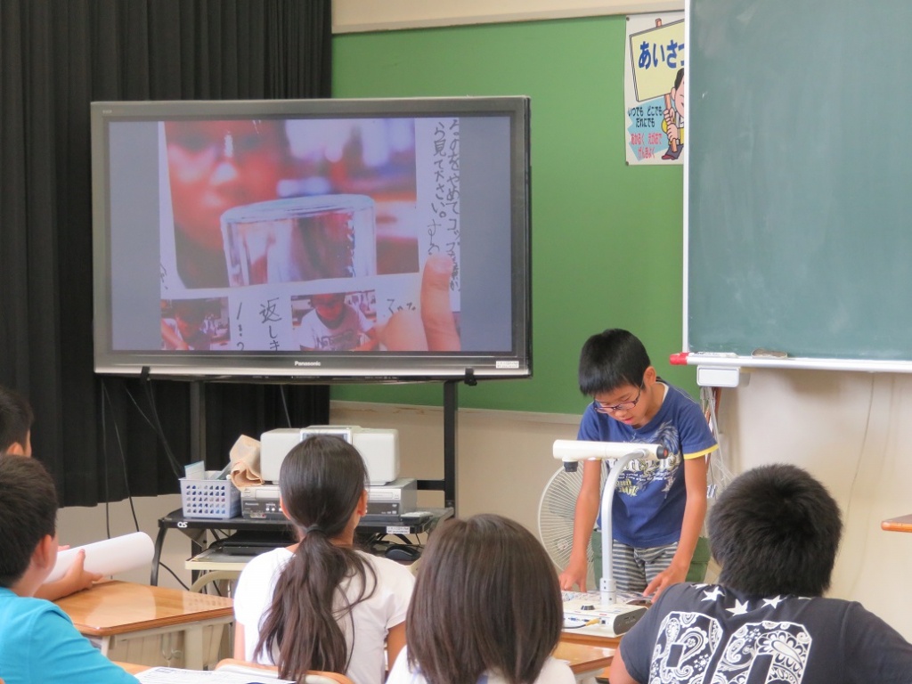 まだ全員が発表できていない学年もあるため、全作品の展示はできていませんが、児童は休み時間などに他の学年の作品を見合っています。