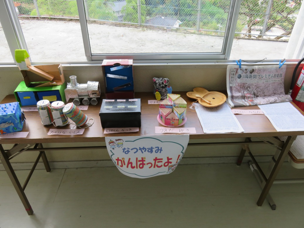 今週、各学年では、夏休み中にしてきた自由研究や図画工作、発明工夫などの作品を発表し合い、展示をしています。