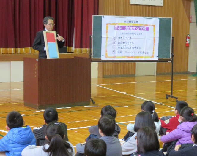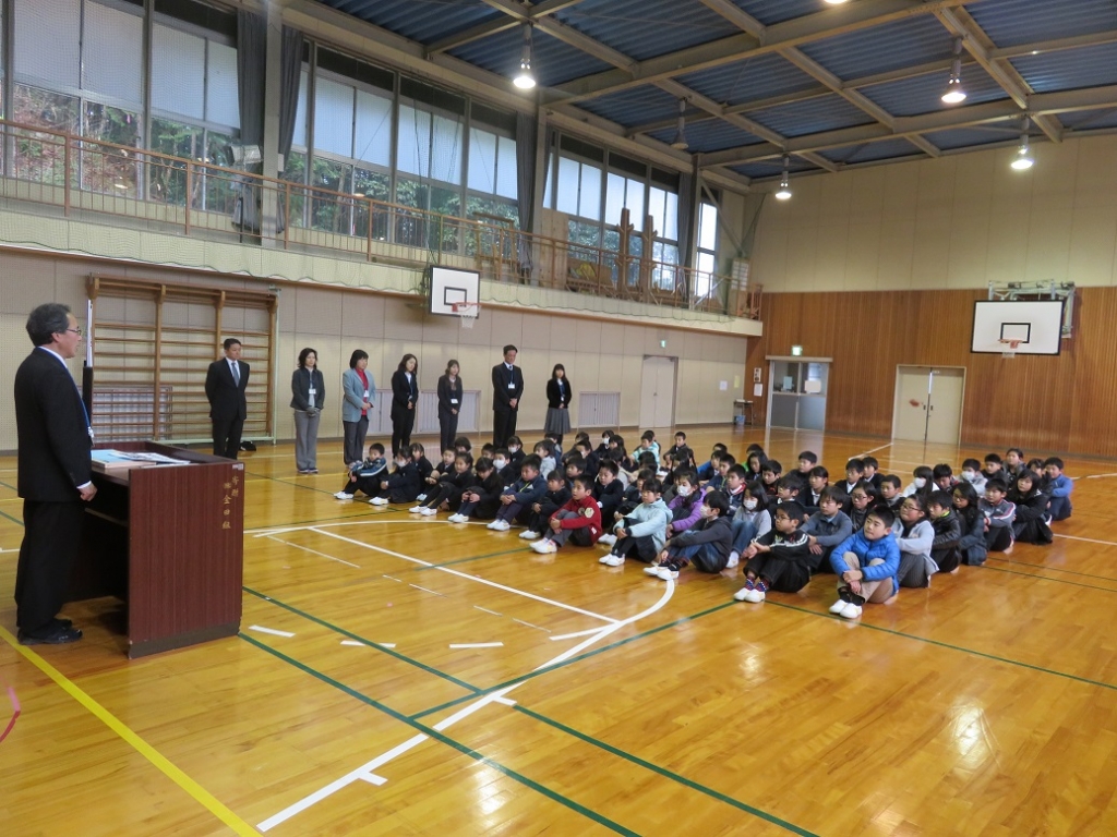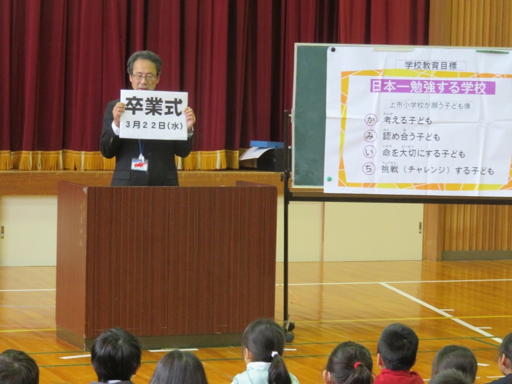 校長は、6年生は小学校最後の学期になり、4月から中学生になるための準備の時期になること、1年生から5年生も、4月からの進級に向けて、これまでの学習や生活のまとめをする学期になることを話しました。