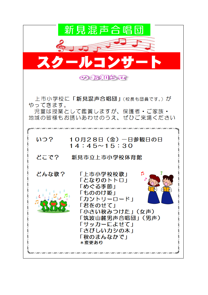 新見混声合唱団の方をお迎えして、合唱を鑑賞したり、いっしょに歌ったりします。皆様もぜひご鑑賞ください。
