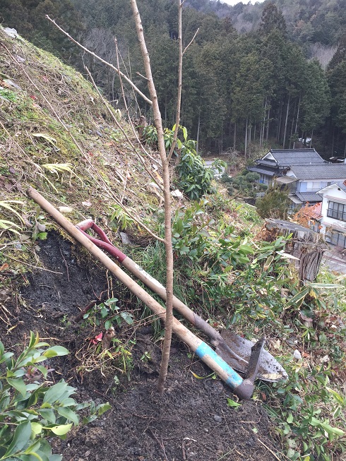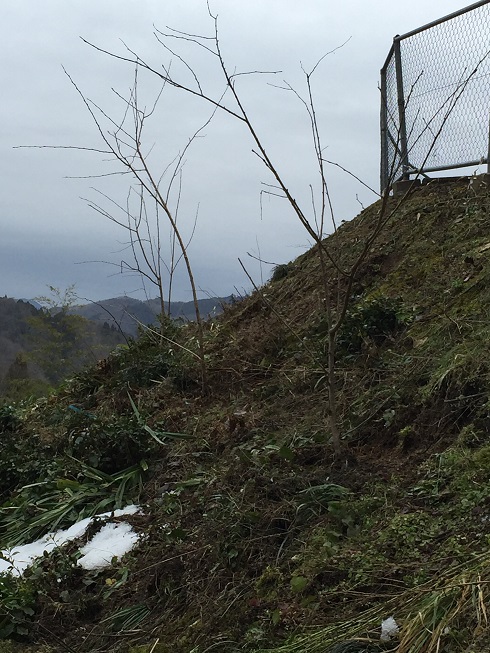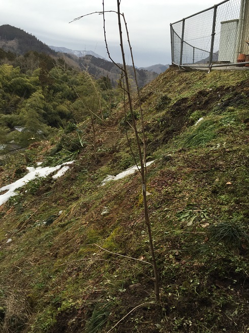 このほど、新見市から桜の苗木を8本いただき、学校坂上の斜面に移植しました。