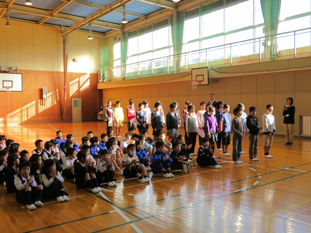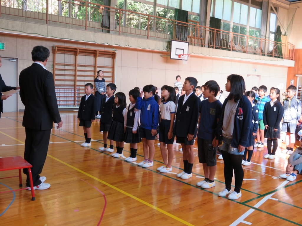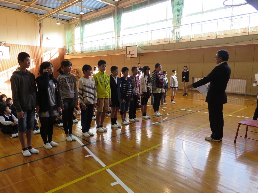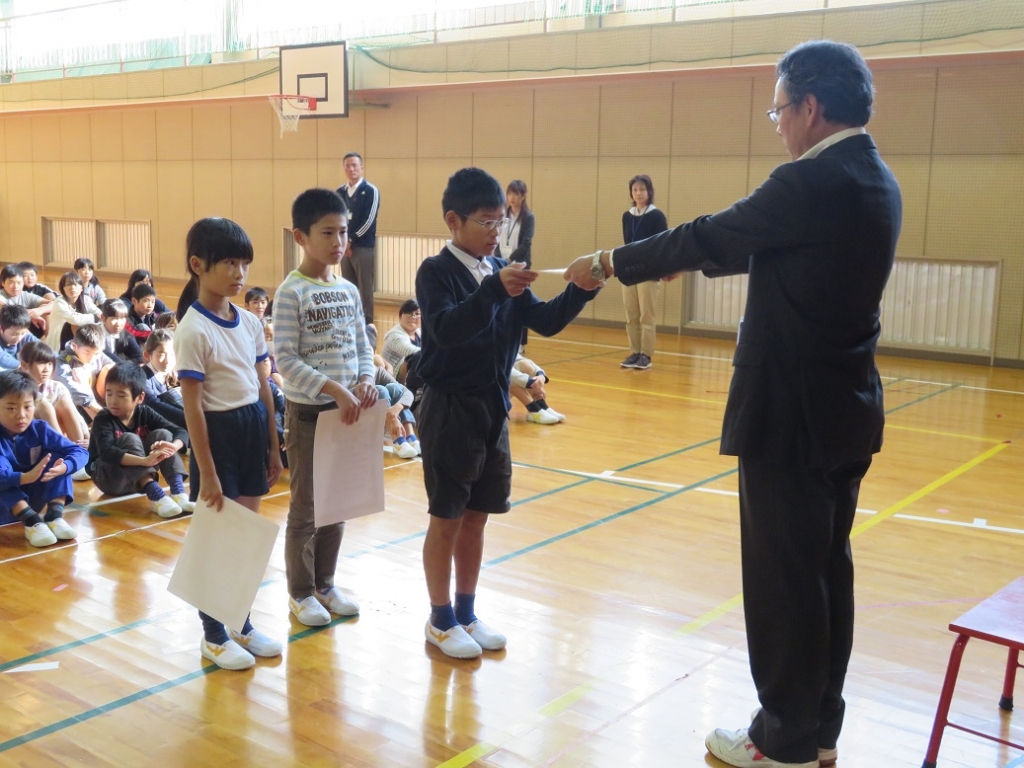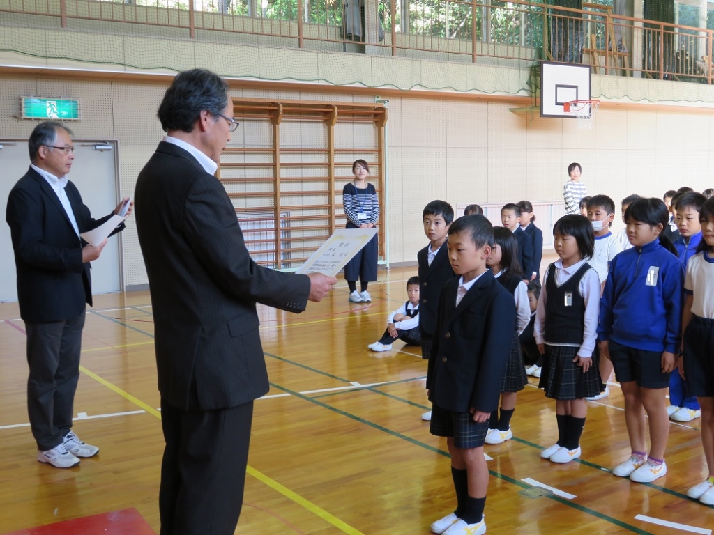 今朝の児童朝礼で、各種の賞状伝達を行いました。