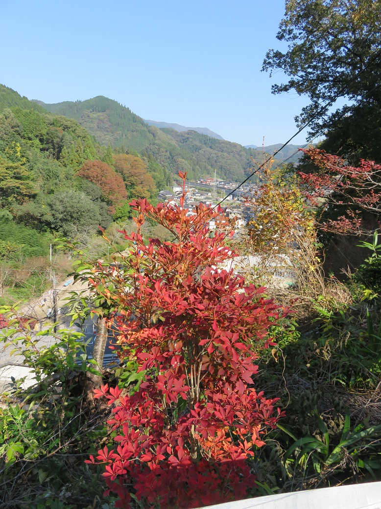学校坂には、近隣の皆様が植えてくださったドウダンツツツジ(生け垣のようにたくさん植樹していただいています。)が見事に紅葉しています。