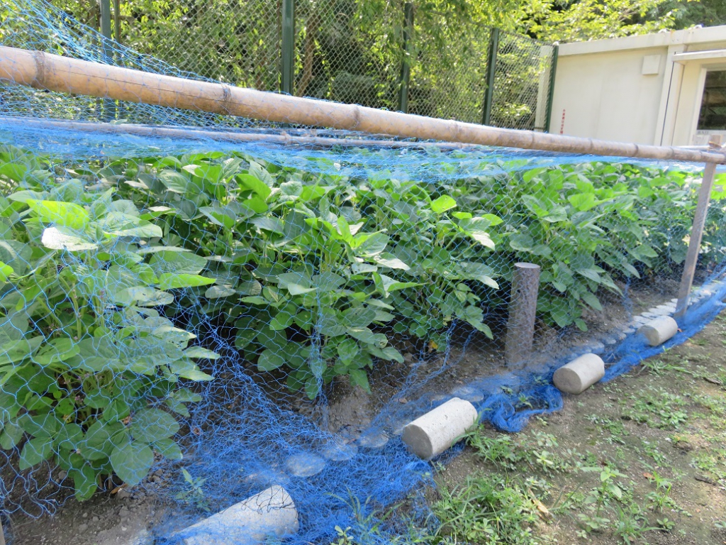 3年生と寿康会の皆さんが栽培している大豆がぐんぐん育っています。