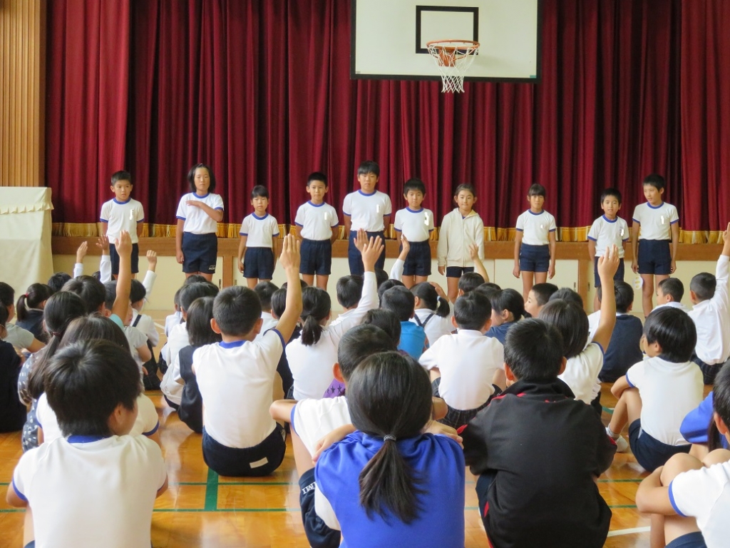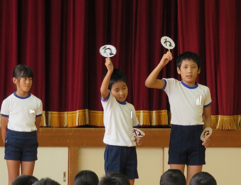 4年生は、2,3人のグループに分かれ、気に入った詩を、リズムに合わせて暗唱したり、手話を交えたり、「ね」という音が出てきたときに札を上げたりするなど、楽しい演出で発表してくれました。