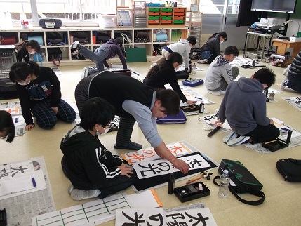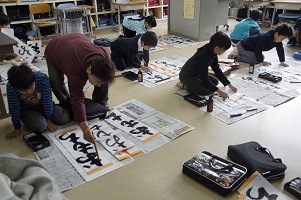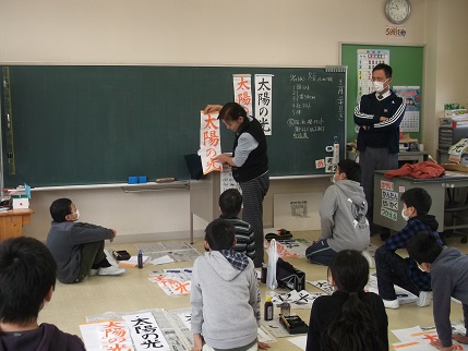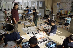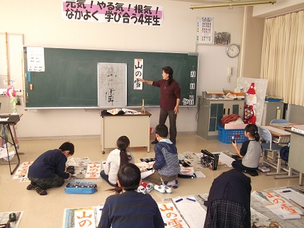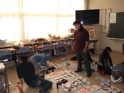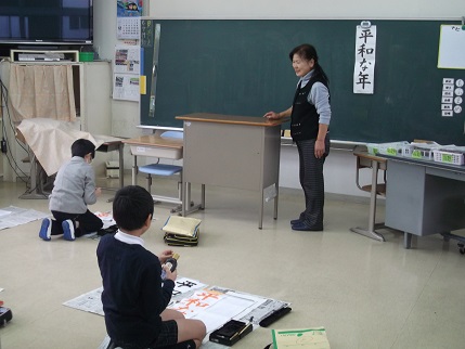 12月19日(月)と21日(水)、学校支援ボランティアでもふだんからお世話になっている林節子さんに来ていただき、習字教室をしました。