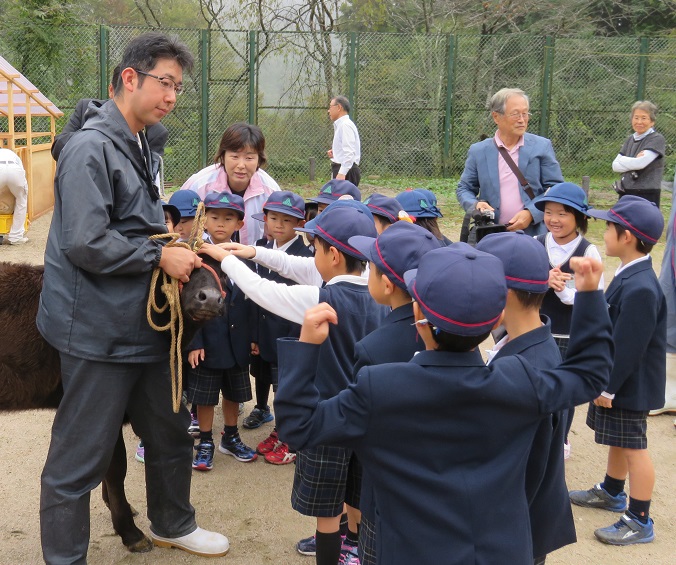 これは、先頃紹介した、新見市が行っている「千屋牛教育ファーム体験事業」を受けたもので、本校では3年目になり、今日から26日までの10日間、ボランティアの皆様のご協力を得て、3年生を中心に全校児童が飼育体験をします。