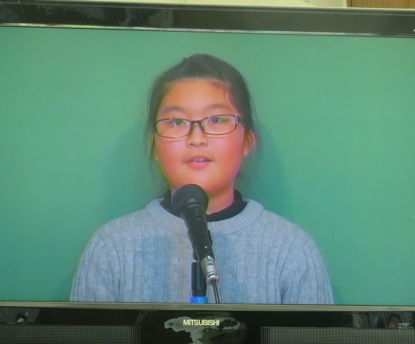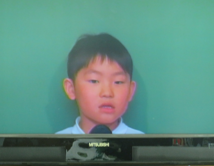 給食時間に、2月生まれの誕生日テレビ放送がありました。