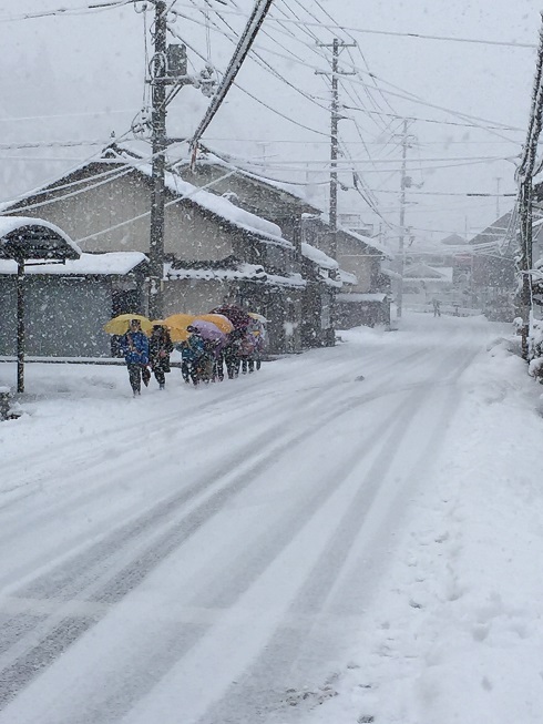 今朝も、近隣の方も手伝ってくださり、児童の通り道の雪かきをしましたが、かいたそばから見るみる白くなっていきました。
