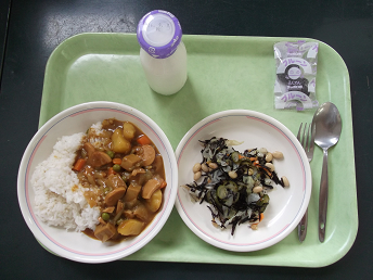 「ぼうさいカレー 牛乳 だいずとひじきのサラダ