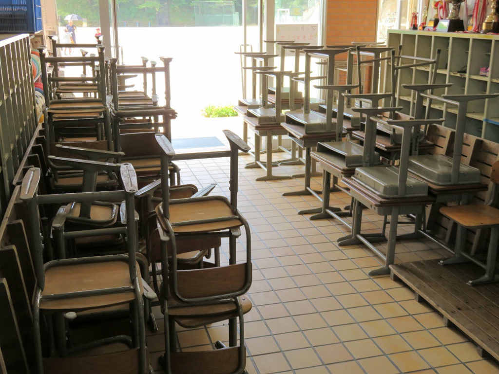 〔これまで使っていた机と椅子です。「ありがとうございました。」〕