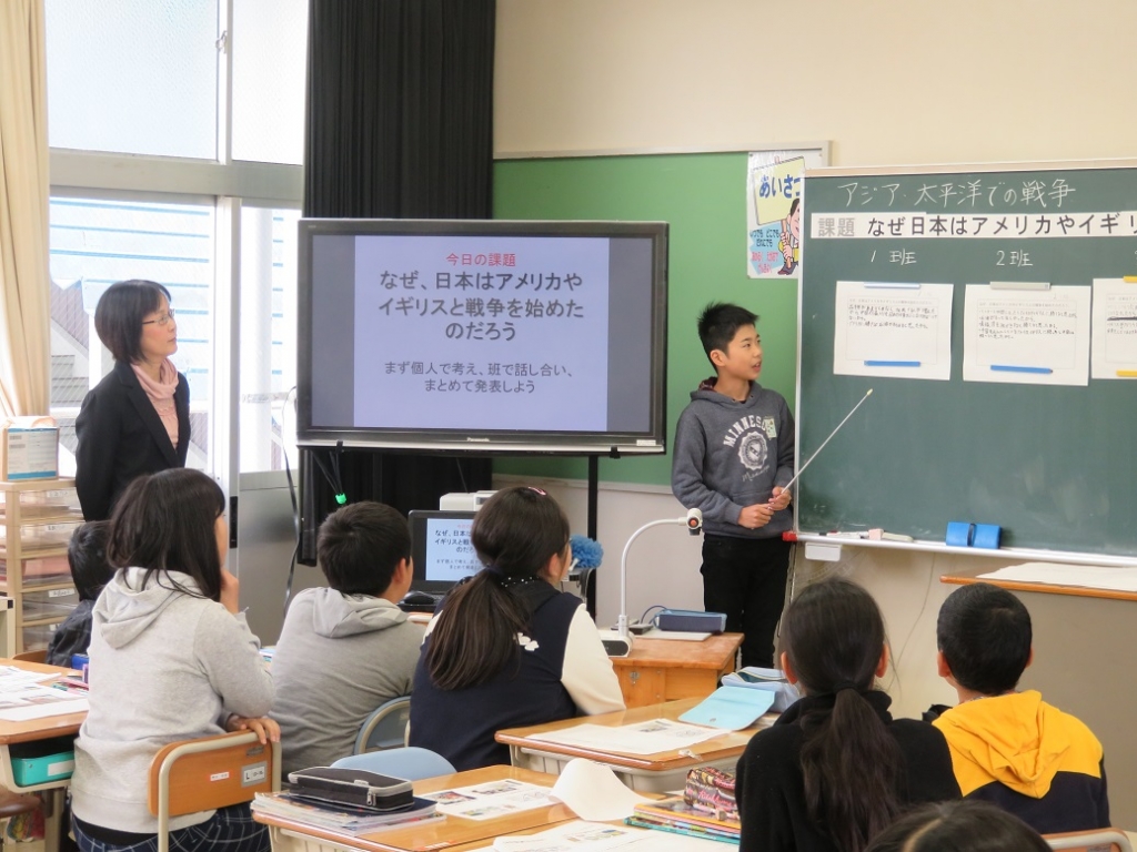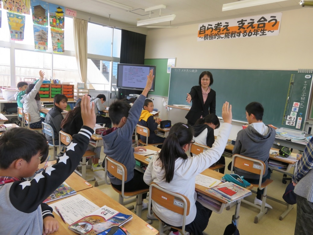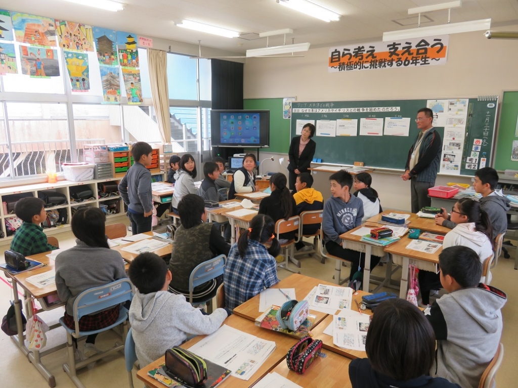 この時間の学習では、単に何があったかを知るだけでなく、どうしてそうなったかを、個人→グループ→全体で考え合う授業で、6年生はとても興味を持ち、積極的に考えを発表したり、感想を述べたりしていました。