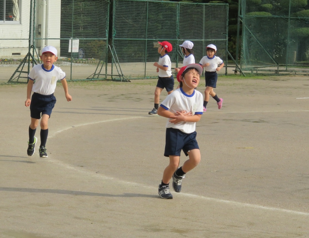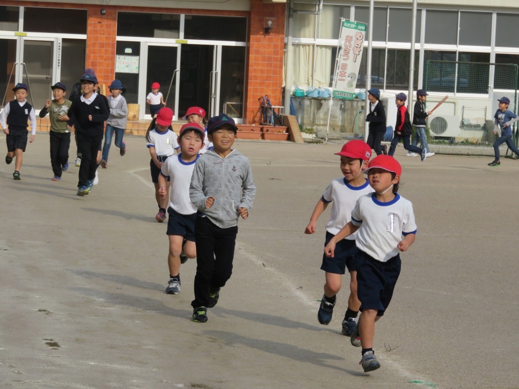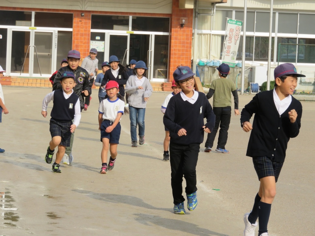 今日も、「校長先生、もう21周走ったよ。」「ぼくも15周」と、楽しそうに話しながらマラソンをしていました。