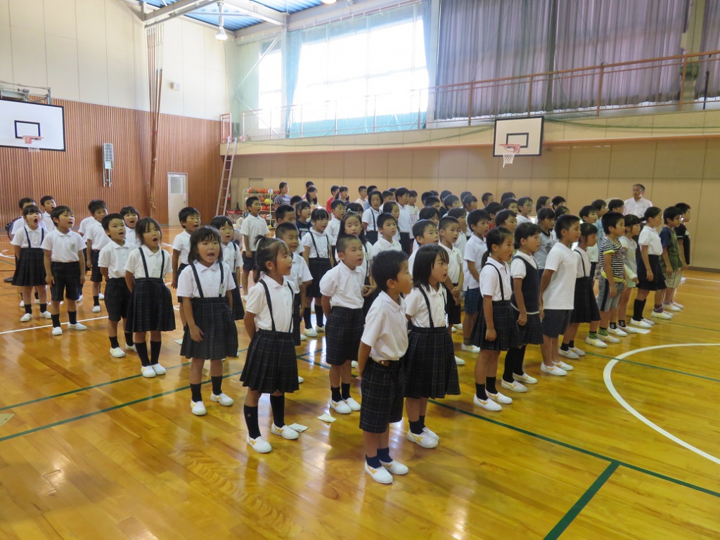 最後に校歌を斉唱しましたが、校歌もとても大きな声で歌い、終業式でも上市っ子のいいところを発揮しました。