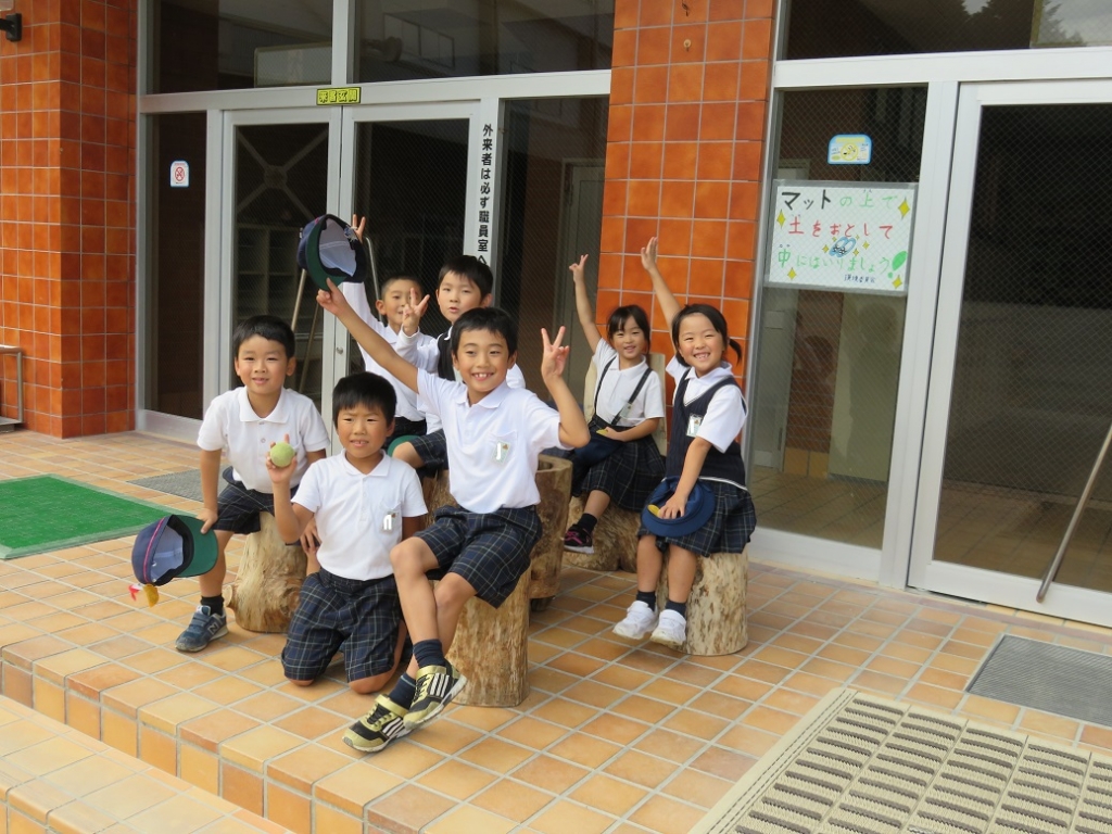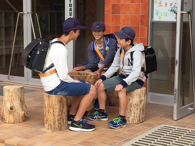 児童は登校時や休憩時間ごとに椅子に座って和んでいます。