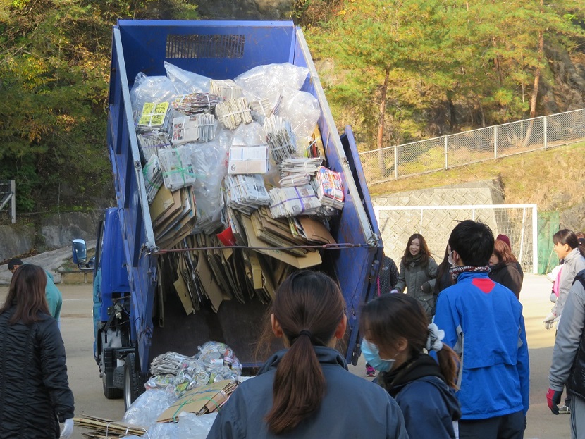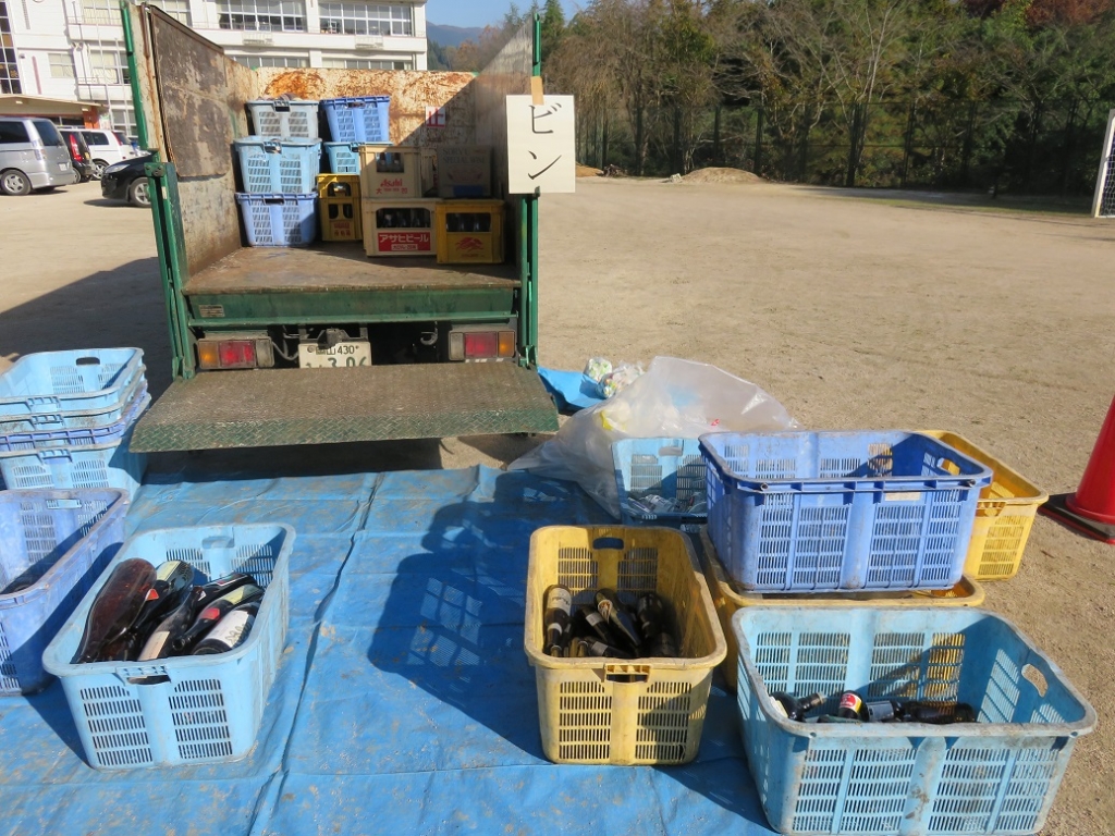 学区の皆様にはこの日のために、各種の資源をためていただいており、また、分かりやすい場所へ置いておいてくださり、たいへんありがとうございました。おかげさまで大量の資源を回収することができました。