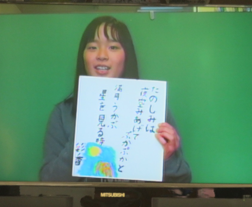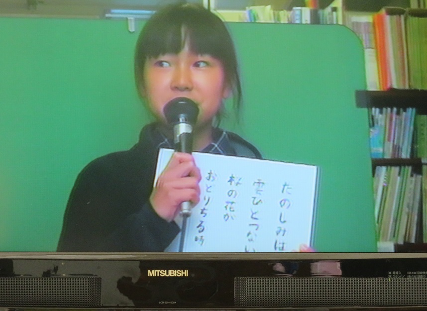 6年生は発表順で後半の児童が、国語で短歌を学習したとき、自分で作った短歌と、その短歌に詠んだ情景を発表しました。