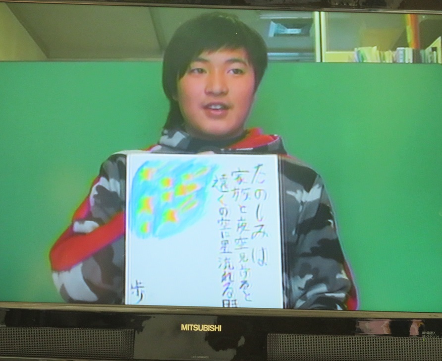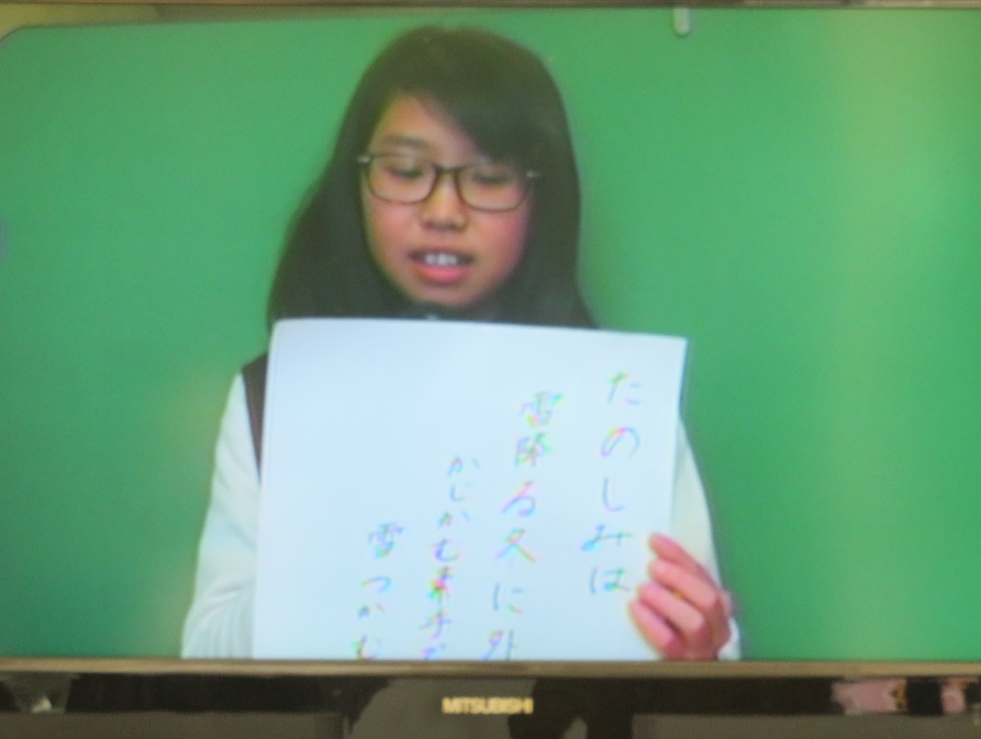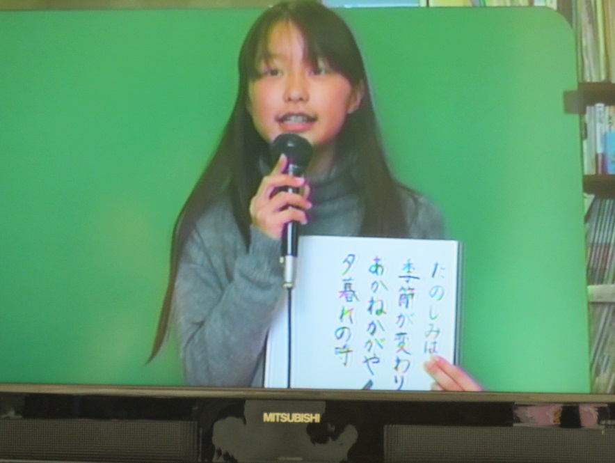 26日の給食時間に、テレビ放送で「発表タイム」を行いました。