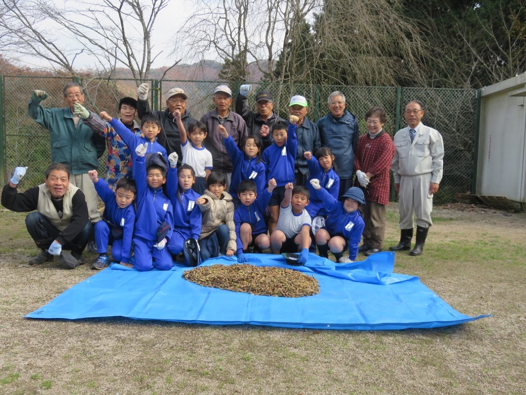 この日は寿康会(会長:吉國政男様)から10名の皆様がお出でくださり、3年生12名と一緒に作業をしてくださいました。