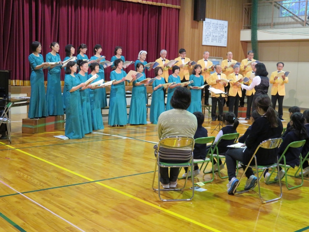 コンサートのオープニングでは、合唱団と児童全員で校歌を斉唱しましたが、児童はこれまでにないくらいものすごく大きな声で歌い、合唱団の方々が驚き、とても感心されました。