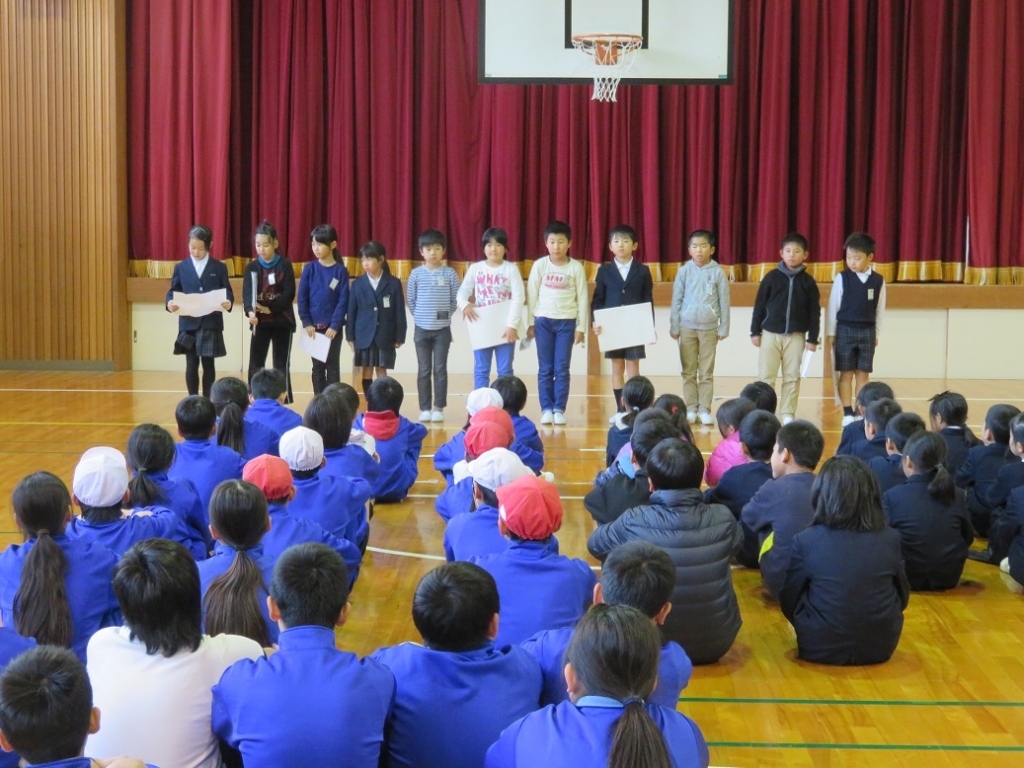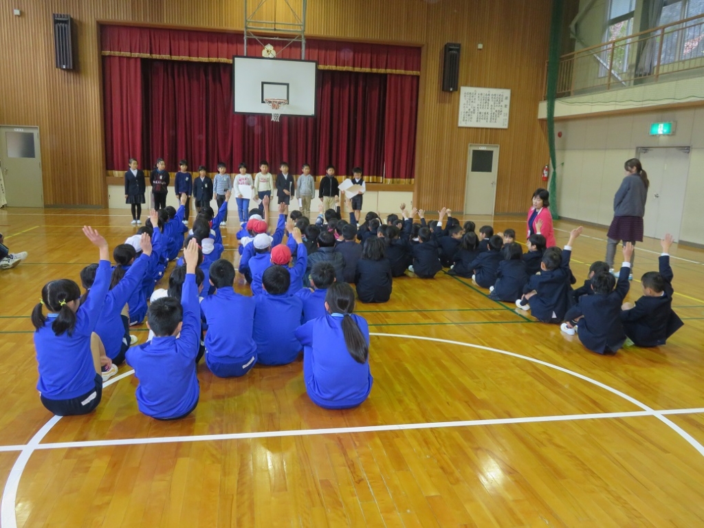 また、他学年の児童も説明をよく聞いており、感想発表ではほとんどの児童が手を挙げ、発表の仕方が良かったこと、食品が色々なものに加工されることがよく分かったこと、また、それをよく調べていたことに感心した等の感想を述べました。