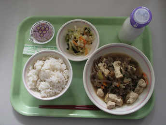 「ごはん 牛乳 ちやぎゅうにくいりすきやき