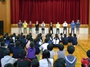 今回の担当は4年生。今月の歌「赤とんぼ」ではペープサートを歌詞に合わせて動かし、雰囲気を盛り上げました。そして、4年生全員でのリコーダー奏「陽気な船長」で締めくくりました。4年生のきれいな音色が響きました。