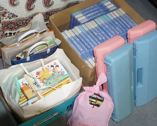 各ご家庭にご協力いただき集まったカンボジアの子供たちへの支援物資(鍵盤ハーモニカ、絵本、使用済みのクレヨン等)を新見ロータリクラブへお渡ししました。物資は、共生高校の生徒さんの協力を得てクラブでクリーニング・梱包をしてカンボジアの子供達に送ってくださるそうです。