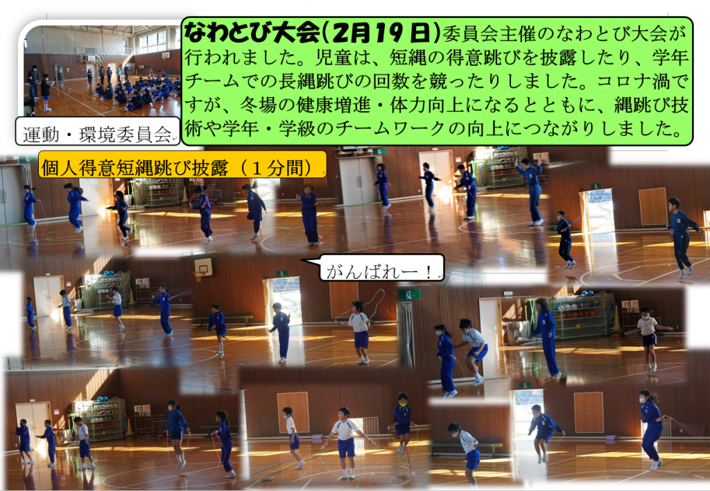2月19日(金)に校内のなわとび大会を行い、学校運営協議会の委員の皆様にも三巻いただきました。