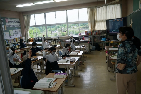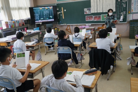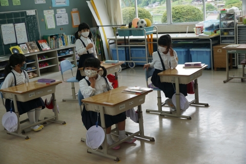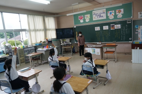 今日は、コロナ禍で予定されていた県教委の学校訪問がなくなりましたが、児童は通常通りの感染予防策をして授業に臨んでいます。