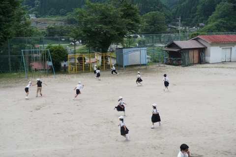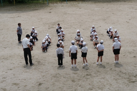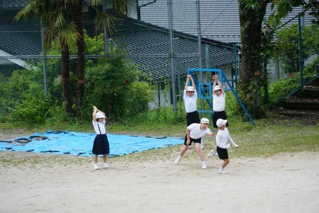 上学年の係が中心となって、全校で鬼ごっこをして遊びました。低学年の児童も絵がでいっぱい遊べました。