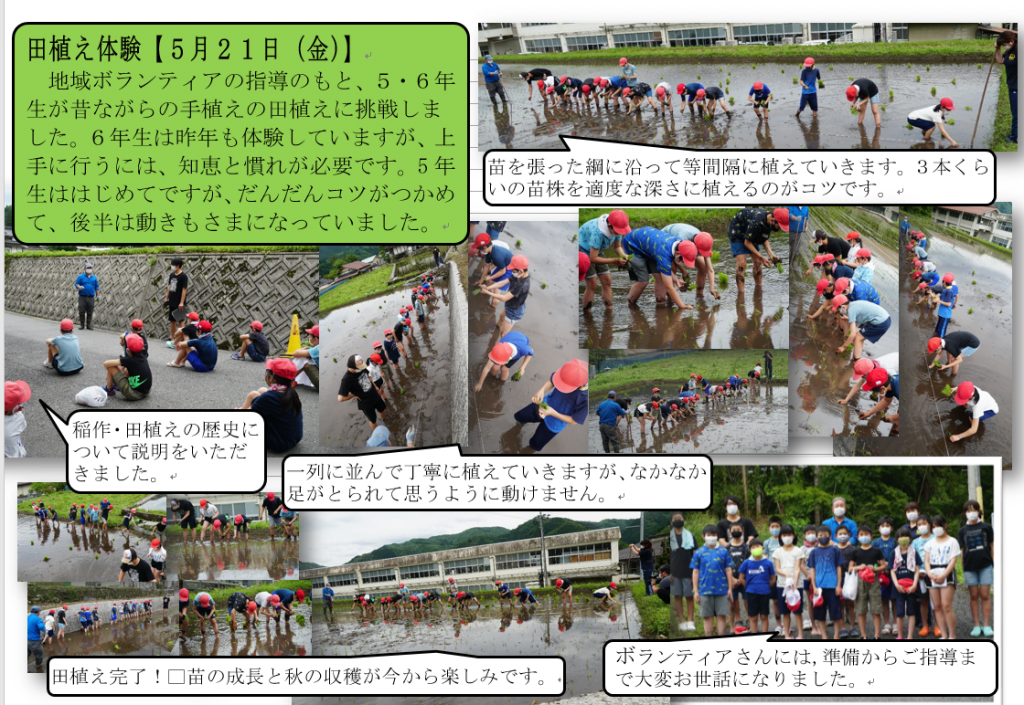 1日遅れとなりましたが、5・6年が田植体験をすることができました。