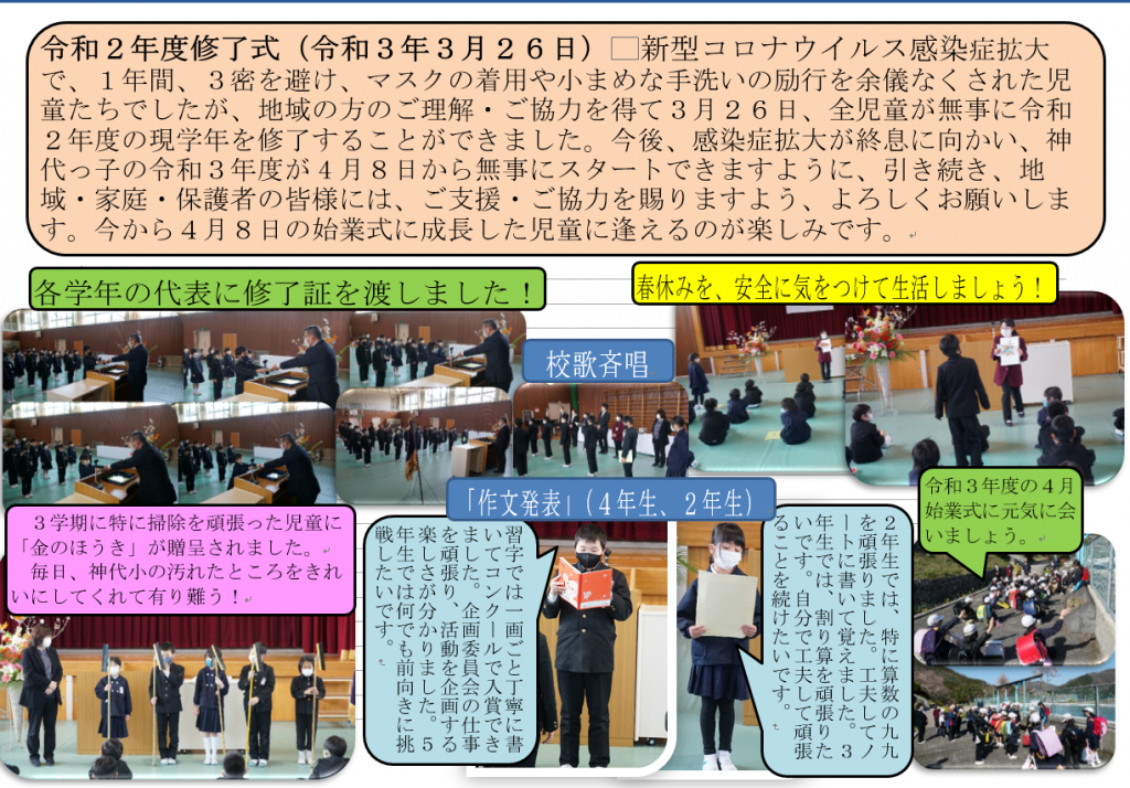 1.本学校は、岡山県北西部に位置する新見市の西部にあります。