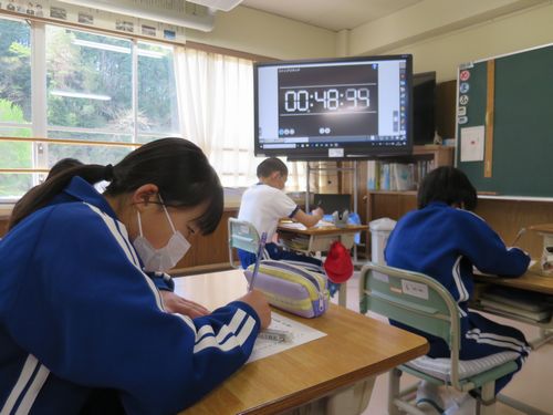 今日は100ます計算を行いました。誰もが一生懸命に計算し、鉛筆の音だけが教室に静かに聞こえます。