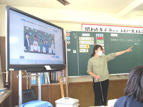 担任の先生は「聞こえた英語を発表しましょう」「よく聞き取りましたね。素晴らしい!」と発問や賞賛の言葉で学習を進めます。