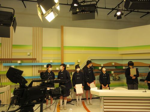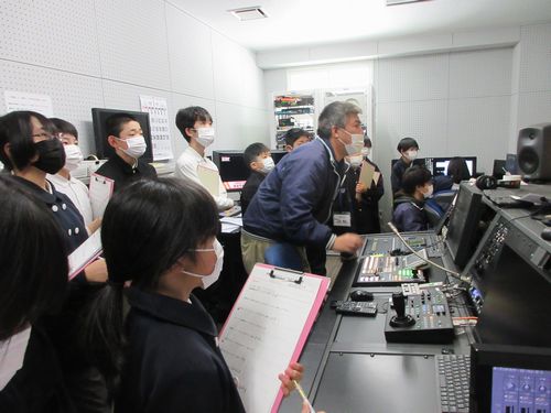 副調整室やスタジオの見学をしました。説明を聞きながら機材を動かす様子や設備を実際に見ることができました。