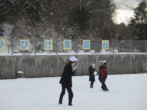 1月26日(木)運動場にたくさん雪がつもりました。子どもたちは休み時間にしっかり雪遊びを楽しみました。
