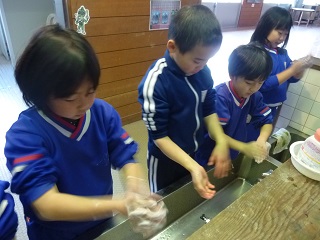 学活で、「正しい手洗いの仕方」を学習しました。手洗いチェッカーを用いて特に汚れているところはどこか確認したり、正しい手洗いの仕方をスライドやDVDで学習したりしました。かぜやインフルエンザの予防がしっかりできそうです。
