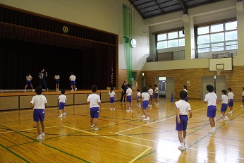 今日から運動会の練習が始まりました。5・6時間目に体育館で「よさこいソーラン!」の練習をしました。汗をかきながら体をしっかり動かして頑張って踊りました。上学年が下学年に教えてあげる姿も見られ頼もしかったです。