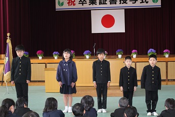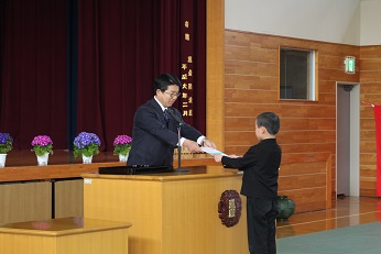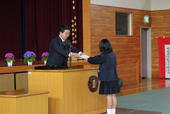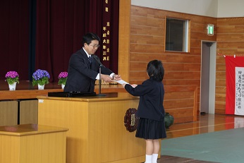 平成30年度の修了式を行いました。各学年の代表者が修了証を校長先生から受け取りました。その後、校長先生が、修了証に込められた先生方の思いや願いについて話をしました。