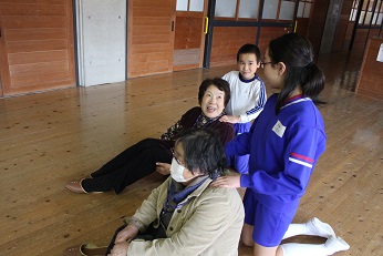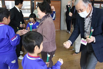 「ありがとうの花」の歌を披露しました。この後、「ふるさと」を一緒に歌いました。
