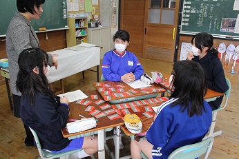 哲多中学校の数学の先生に来校していただき、6年生の算数(数学)の授業をしていただきました。中学校での数学の授業に役立つ知識や、小学校の算数の復習など、楽しく分かりやすく説明してくださいました。また、中学校数学に役立つカードゲームの仕方も教えてくださいました。