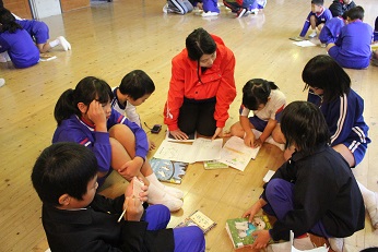 読書週間の締めくくりに、読書集会をしました。縦割り班でおすすめの本を紹介しました。
