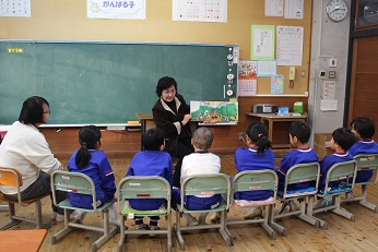 1・2年生は、「ばすくんのくりすます」を読んでいただきました。