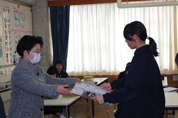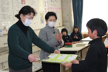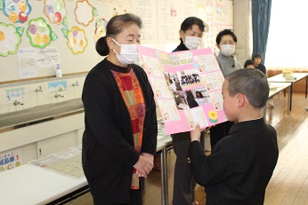 今年度最後の放課後学習がありました。今日も、ボランティアの方にプリントの丸付けをしていただいたり、間違ったところを教えていただいたりしました。その後、一年間の感謝の気持ちを込めてカードを贈りました。