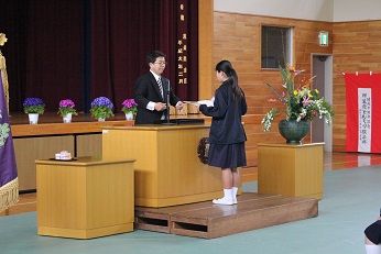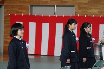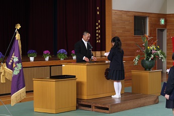 本日、平成30年度卒業証書授与式が行われました。卒業生は女子4名でした。堂々とした姿で、卒業証書を受け取ったり別れの言葉を言ったりすることができました。式の後の謝恩会では、「哲多中学校に行ってもがんばる」ことを出席者に約束しました。