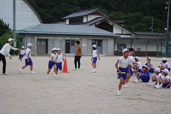 今年度初めての全校リレーをしました。1年生から6年生までが4つのチームに分かれてバトンパスをしながら一生懸命走りました。運動会に向けての練習が始まりました。