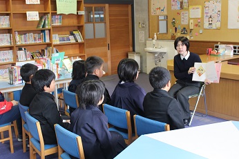 図書館司書の西野さんが来校し、子ども達に本の読み聞かせをしたり、図書委員会の活動を一緒にしたりしました。
